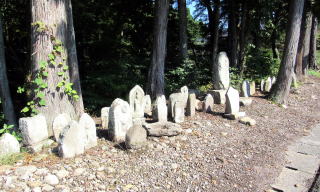 長野冬季オリンピックに備えて県道31号が整備され、新しい大町街道(通称)となった。そこに連絡する旧村道が拡幅舗装され、道路わきに近隣での耕地整理や道路工事にさいして、元の場所から移されてここに集められたらしい。