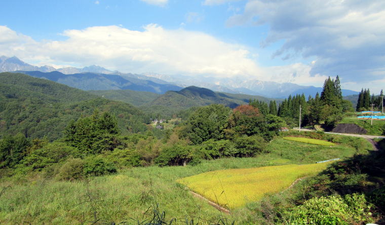旧美麻村の大町街道跡を探索する旅の3回目は、大町知役所美麻支所の辺りから藤地区のアルプス展望ルートを経て「ぽかぽかランド」の辺りまで歩きます。 ◆過疎の村の心に沁みる美しい風景◆ |