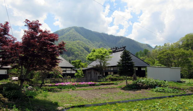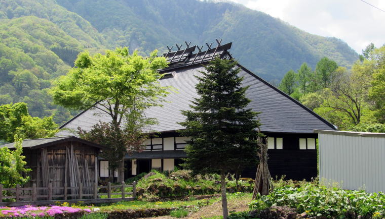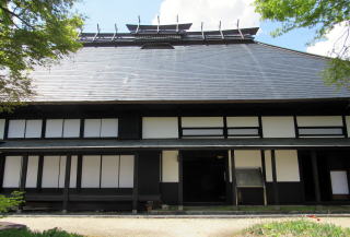 ![]() ▲千国の庄史料館の主屋: 間口12間3尺(22メートル)、奥行き6間1尺(10メートル)の茅葺二階造り ![]() ▲千国の庄史料館の敷地: 左の建物が番所の陣屋 |