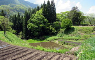 こうして、千国街道は千国で一度西向きにに転じて、姫川渓谷から2キロメートル余り離れた高原を往くことになります。というのも、千国の南には、標高850メートルほどの前山が立ちはだかっていて、姫川沿いの崖を避けるためには、西に迂回するしかないからです。