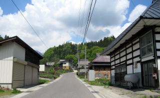 番所を中心とした千国の集落は、街道沿いに標高600~680メートルの段丘台地=扇状地に位置しています。