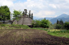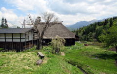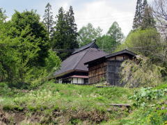 牛方宿は、千国の集落の一番奥から標高にして100メートル――道のりにして1.7キロメートル――ほどのぼった山腹高台(およそ標高780メートル)にあります。