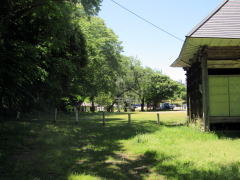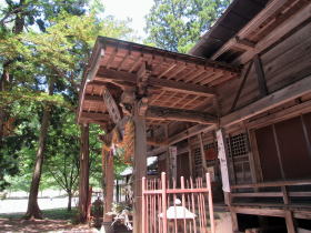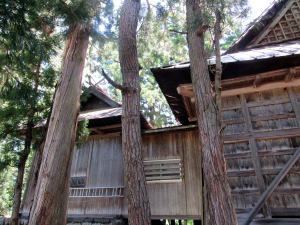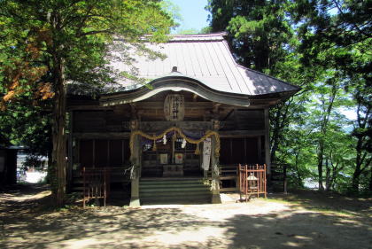 街道は拝殿と本殿脇を東に回り込んで段丘崖沿いを通っているので、ここだけ険しい杣道風になっています。