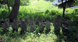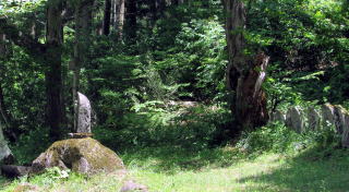 ▲木漏れ日を浴びる石仏群
