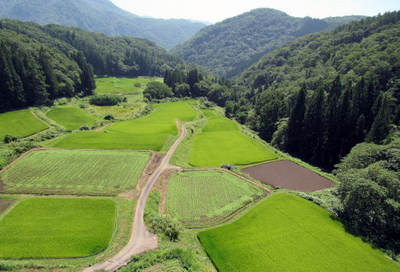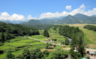 松沢峡谷は、その名のとおり栂池高原から始まって姫川に注ぎ込む松沢が削り出した谷間です。そこには水田地帯が広がっています。谷の東側を縁取る尾根を越えると白馬村に入ります。