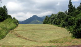 栂池高原スキー場のゲレンデは、松沢旅館街の前まで迫っていますが、この草原は昭和前期までは茅場でした。ここで育てた茅を刈り取って乾燥させ、屋根に葺いたのです。