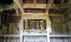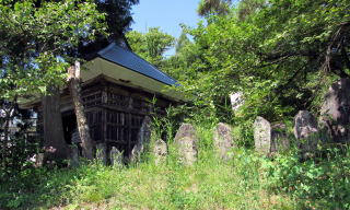 谷を下り切ると、道脇に小さなお堂があります。これが松沢薬師堂です。石仏群に囲まれたお堂です。松沢荘のお婆さんによると、この薬師堂は大変に霊験あらたかな薬師様が祀られていて、近隣の人びとが病気やけがの平癒を願うと、必ずかなったそうです。