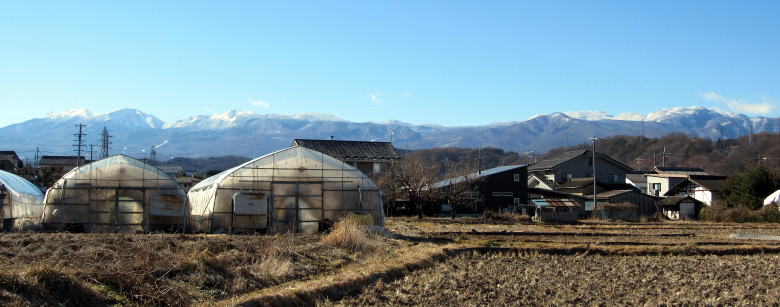 ![]() 海瀬四ツ谷の水田地帯から街並みの南西の彼方に望む、硫黄岳から横岳までの八ケ岳連峰 ![]() 武州道と平林観音への参道とが出会い分岐する尾根突端の下に祀られた石仏群から北に望む浅間山 抜井川が増水して四ツ谷の辻から高野町に入れない場合に山裾から平林に連絡する武州道の脇道があった |