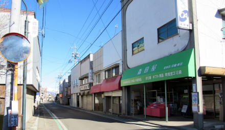 高野町の千曲川右岸に東町通りと呼ばれる街並みがあります。この通りは、旧武州道の遺構に沿った古い商店街で、大正期から昭和期まで大いに栄えました。 ◆大正~昭和期に繁栄を誇った商店街◆ |