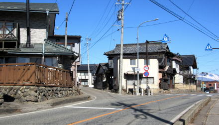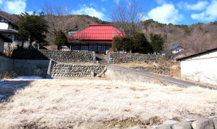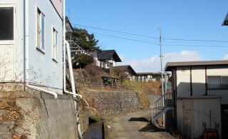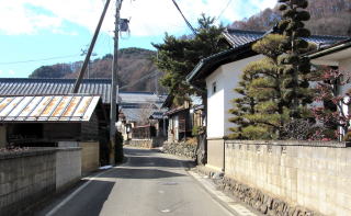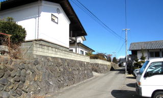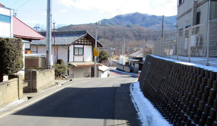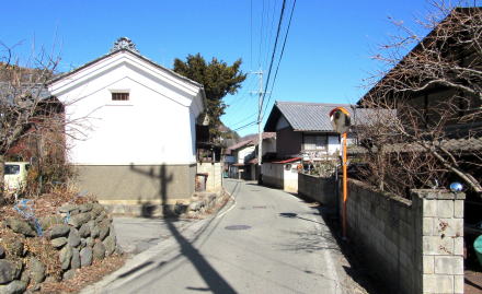![]() ▲国道299号となった旧街道。江戸時代の痕跡は見当たらない。 ![]() ▲ここで国道から上の段丘に向かう分岐点 ![]() ▲養蚕向けの主屋と漆喰土蔵は昭和期の懐かしい農村風景 ![]() ▲粗壁土蔵も旧街道沿いに並ぶ ![]() ▲昭和30年代の土蔵と養蚕向けの主屋は無住 ![]() ▲段差を支える石垣の上に板塀という屋敷は荒廃が進んでいる ![]() ▲江戸時代からの町割り(敷地区画)は残されているようだ ![]() ▲西側の段丘上から上畑の集落を眺める 大洪水があった1742年(寛保2年)には、上畑を含む所領を支配していた旗本水野家では当主の忠穀(ただよし)が死去して混乱状態で、上畑村にとっては不運なことに、洪水被害に対してまともな対策が打ち出せなかったようだ。 村が領主におさめる年貢は、藩や幕府に記録された場所ごとに村高(生産性)が査定され記録されている。以前の場所で村を再建する場合に、普通は年貢の減免がおこなわれる。しかし、水野家では当主の死亡と継嗣手続きで混乱していたため、旧地での復興では年貢の減免ができなかったようだ。 こういう場合、別の場所に新規開拓・開村すれば、生産が復興するまでは年貢の猶予を与えられるので、現在地への移転をはかったものと見られる。 ![]() ▲旧街道から山際の段丘上の自福寺を眺める ![]() ▲段丘を降りていく旧道: 高低差と曲りが歴史を感じさせる ![]() ▲高石垣で支えるほどに段丘崖の高低差がある街 ![]() ▲中畑の虚空蔵堂。お堂が属していた寺院は今はない。 戌の満水の後、上畑村と街道は山裾に移転して再建されたが、段丘があったり傾斜がきつい尾根が張り出していたりしている場所もあった。 そういう場所では、道や屋敷地の両側で大きな高低差がもたらされた。そこで、石垣で高低差や段差を支えなければならないところがあちこちにできることになった。 ただし、現在ある高石垣のほとんどは昭和期に道路補強・拡幅工事のさいにつくられたもののようだ。江戸時代には高石垣は特別の技術が必要で費用も大きかったので、自然石の野面積みできる程度の高さがまでだったようだ。 |