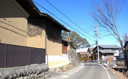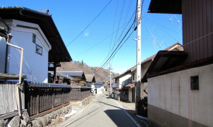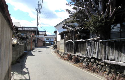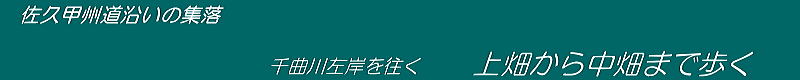 佐久穂町では佐久甲州道の遺構は脇街道を含めて3本あるようです。①国道299~141号になった道、②国道の西側の段丘上の道、③千曲川右岸の道です。 国道沿にはさほど懐かしい景観が残っていないので、今回はこのうち②をたどって、昭和期の面影を残す家並みが残る上畑宿跡から中畑までの旧街道を探索してみます。 ◆洪水で壊滅し山裾に移して再建された集落◆ |