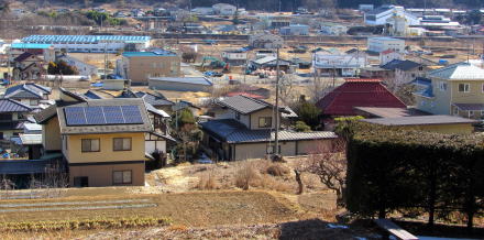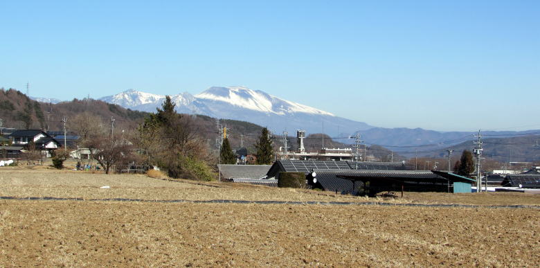 ![]() 上畑地区の水田地帯でははるか北に浅間山が見える |
