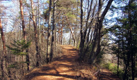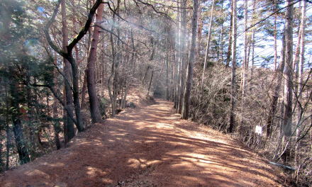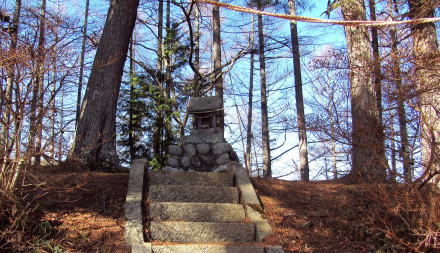 ![]() ▲大鳥居をくぐってから振り返って大門の家並みを見おろす ![]() ▲かつては桜並木があったが、今はわずか2本だけ残った老桜 ![]() ▲護国神社の社殿にのぼる石段。往古、寺堂があったのかも。 ![]() ▲護国神社の拝殿。往古は寺院の堂宇の跡地かもしれない。 ![]() ▲岩壁の下の窪みに並ぶ祠群。入母屋風に見える変形した春日造りで、阿弥陀如来、薬師如来、千手観音菩薩などを祀るものらしい。密教が、神道の背後にあると見なす曼陀羅体系を顕現する祠群かもしれない。 ![]() ▲岩壁の続きの先に諏訪社の拝殿・蓋殿 ![]() ▲北に延びる尾根突端は展望台兼ねた伏見稲荷の境内 ![]() ▲石段をのぼった尾根峰には稲荷社の石祠が祀られている ![]() ▲稜線上は登山道として整備されている ![]() ▲狭い尾根道は、往古、修行の道だったか ここの尾根は地元の人びとから権現山と呼ばれていて、間に谷を挟みながら断続し、およそ1.2キロメートルにわたって北に続いている。断続するの尾根上には、約400メートルほど北に十二明神社、さらに500メートルおいて尾根裾に諏訪社――熊野社、天神社、八幡社が合祀――がある。 そこから300メートルほど北西の稜線上には下端城跡の段郭群が200メートル以上にわたって続いている。戦国時代の武田家の信濃攻略時の出城らしいが、おそらく修験場跡の地形を利用したと見られる。地形から見て、これらは一体的に理解すべき史跡かもしれない。 |