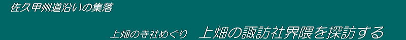 上畑の諏訪社を中心とする神社の由緒来歴や畑大門という地籍名の起源を探る史料はまったくないようですが、古くからの地名らしいです。 ◆古代から中世の密教修験の拠点だったか◆ |