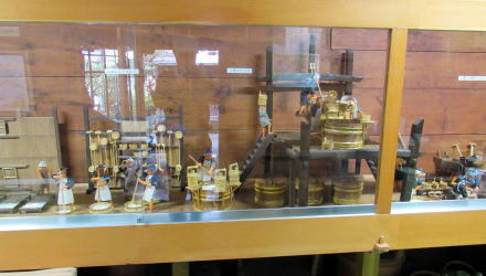 ▲長屋土蔵のなかに展示された昔の酒造りの作業風景