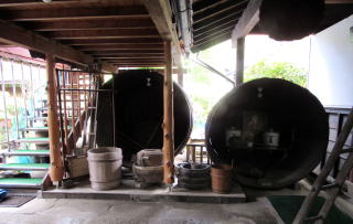 巨大な桶や手桶、樽も古民具として展示