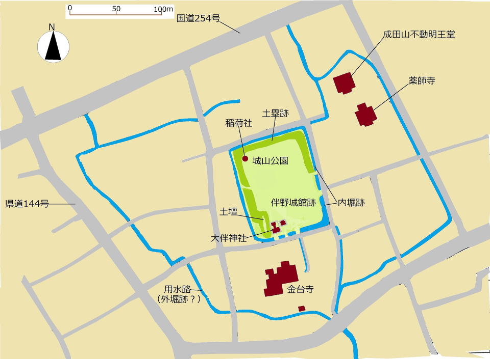 北条氏は伴野領の統治の拠点とするために、残された城館を改修整備し、今日に遺構が残る土塁や堀を構築したものと見られます。
