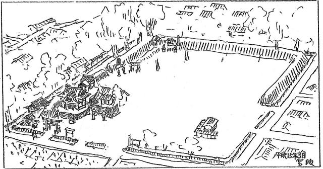 ▲信定寺領主館 出典:宮坂武男『縄張図・断面図・鳥観図で見る 信濃の山城と館』