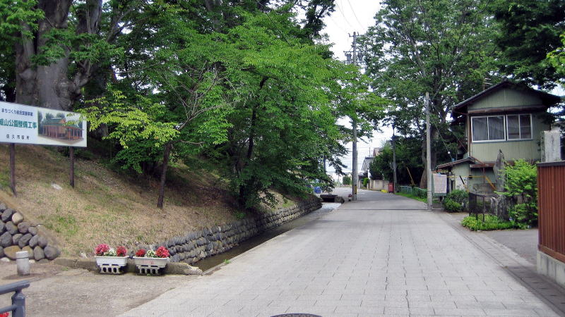 公園の外側の周囲には、農業用水路がつくられています。これは、戦国時代に城館の縄張りを取り巻いていた堀の遺構(水路の勾配)を利用して整備されたものと思われます。ただし、明治以降の道路建設で、堀跡のうち埋め立てられたところもあると見られます。