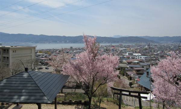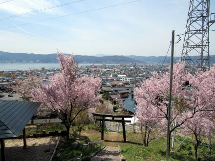 ここは、本郷から五官、関谷という地区の裏手で、諏訪盆地と湖を見おろす高台で、かつては地元の人びとは長い階段を登って若宮社にお詣りしたとか。