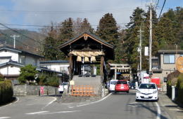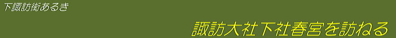 諏訪湖から北上する参道の格式や下馬橋を経て春宮に参詣する道筋は、鎌倉時代から室町時代に形成されたようです。現在では、大門通りと呼ばれる参道の周囲は住宅街になっていますが、その昔はどんな風景だったのでしょうか。
