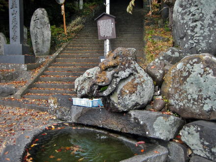 竜の口とは、道の北側斜面から湧き出る水の注ぎ口となっている竜の頭の彫像を意味します。江戸時代の文政年間に石工、山田金右エ門がつくったと伝えられています。