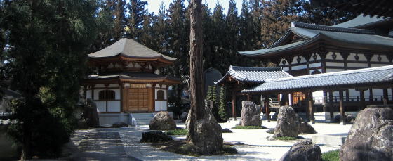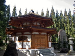 枯山水庭園の先には、真新しい八角形の清浄光殿があります。経典を納めた建物でしょうか。