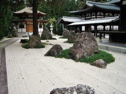 慈雲寺の境内には禅寺らしく枯山水庭園があります。白礫を敷き詰めて波紋のような筋を立てた平面のあちらこちらに岩を配置して、独特の世界観を表現しているようです。