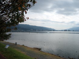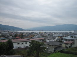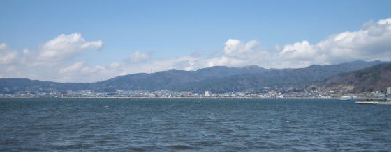 ▲諏訪湖の対岸から下諏訪・岡谷方面を眺望