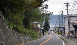 ▲坂道からの諏訪湖の眺め