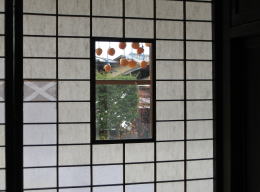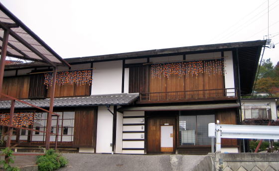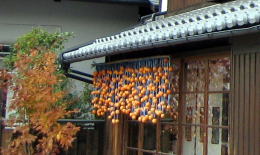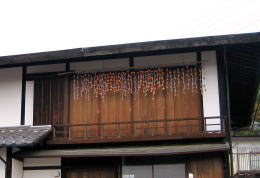 ▲茶の間の障子越しに見える軒端の干し柿