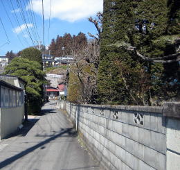その三ツ辻を南に折れてみると、近隣の住宅街を通る道があります。農村に囲まれていた下ノ諏訪宿の名残が感じられる風景に出会います。