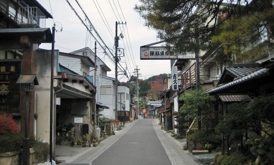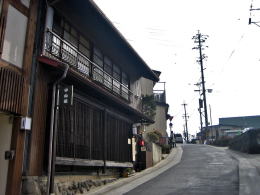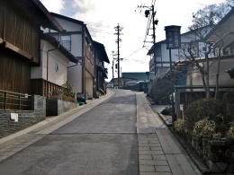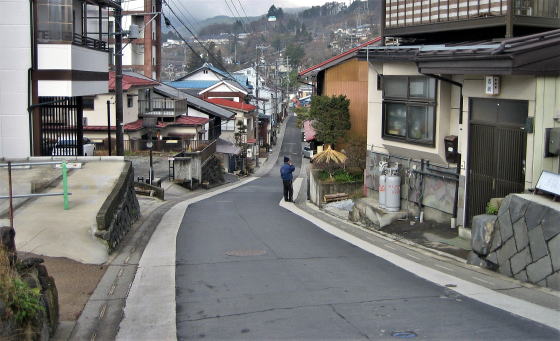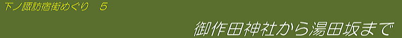 緩やかに下ってきた街道は、湯田町に入ると、秋宮に向かって少しずつ上っていきます。この上り坂が湯田坂で、その両側には鉄鉱泉宿や温泉浴場の「旦過の湯」、中山道茶屋「松屋」などがあります。