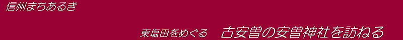 7~9世紀に、当時は先進地帯であった九州の豪族を塩田に移住させて開拓を担わせたと見られています。有力な一族が阿蘇氏で、彼らが塩田の農耕地と集落を開拓したことから、塩田平は古くは阿宗とか古安曽とも呼ばれていたそうです。神社の背後に迫る独鈷山の尾根支脈の峰は安曽岡山と呼ばれていますが、山裾の丘陵は往古、安曽岡と呼ばれていたようです。