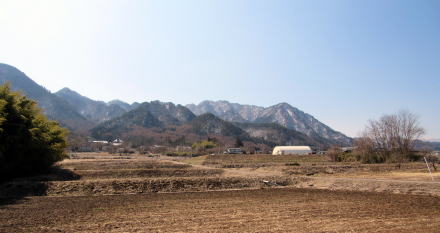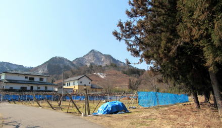 ▲独鈷山の北に張り出した丘が前山で北条氏の城館跡がある