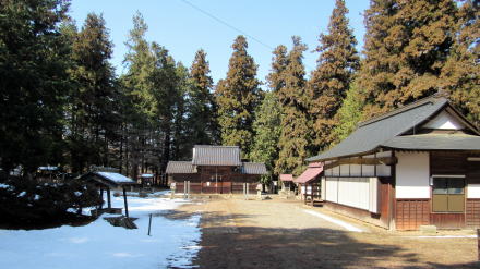 ▲広大な命題の奥に諏訪社風の幣拝殿と本殿が配されている