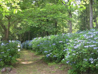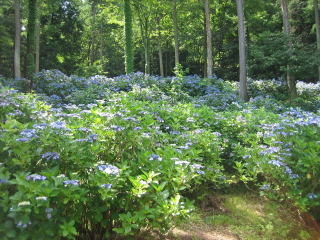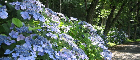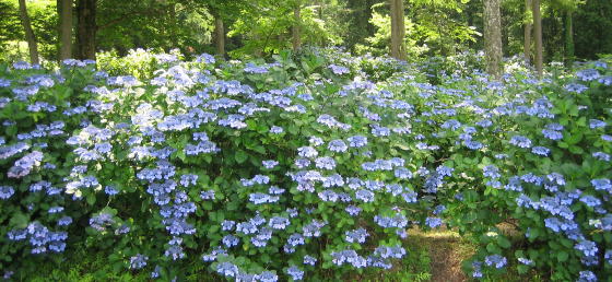 だから山麓の針葉樹や落葉樹の下で元気に育っています。地元の人の世話もあって、あじさいの株はこの辺りの山麓樹林に広がりました。