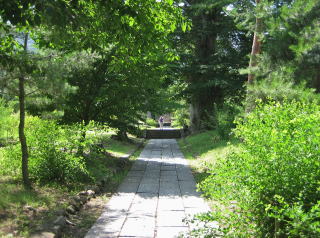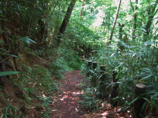 遊歩道は尾根の形に沿って緩やかに曲がっています。西に向かって歩き続けると、龍光院の参道を横切ることになります。