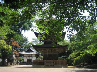 さて、まず前山寺にお参りして夏の風景のなかの本堂と三重塔を眺めましょう。境内では樹木の枝や葉が茂っていて、建物の姿を少し隠していますが、それはそれで夏らしい趣きです。緑豊かな信州の寺院らしい景色です。