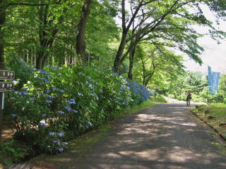 そこから西におよそ800メートル余り続く山麓の小径が「あじさい小道」です。