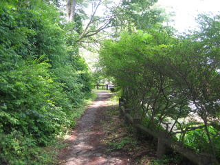 谷間を回り込む遊歩道を進むと、塩田城跡の下に出ますが、そこが「あじさい小道」の東端です。