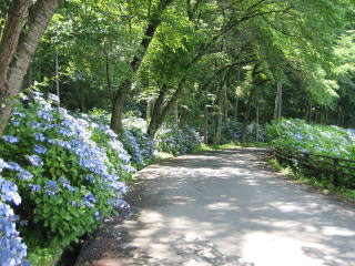 あじさいに囲まれた遊歩道