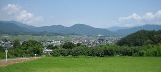 ここからは、塩田平から上田市街に続く盆地を見おろすことができます。雄大な風景です。右上の塩田平の展望写真では、右手前の尾根の向こうに上田市街や上田城があります。