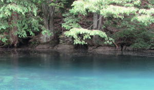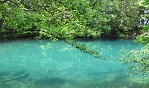 そのため、池そのものには魚や貝はもとより、水草や藻も生きることはできません。つまり、池の水を汚す条件はまったくないため、水底まで完全に透き通って見えます。
