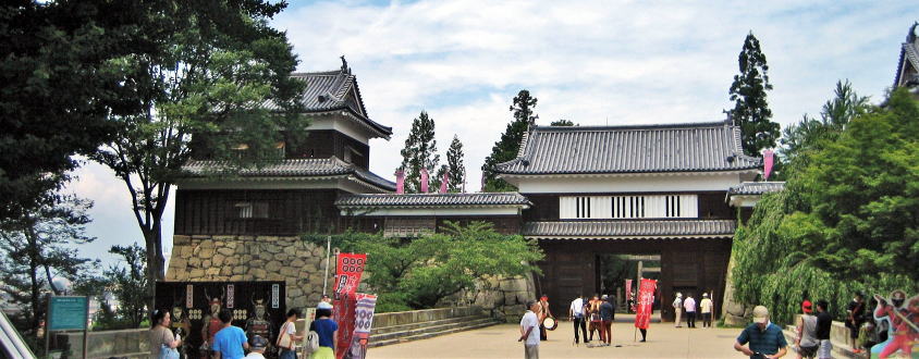 ▲上田城址公園本丸入り口の楼門 左側は南櫓