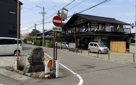 そういえば、この辺りの家屋は住む人がいなくなって荒廃し、どんどん解体撤去されています。この道祖神の隣にも、大正~昭和前期の建築と見られる古民家があったのですが、数年前に解体撤去されました。この辺りに禰宜太夫宅跡があったそうです。
