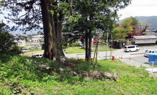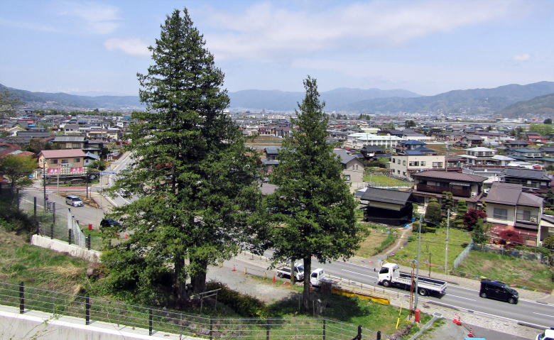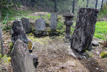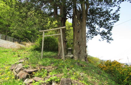 石清水から東に80メートルほどのところにサワラの高木が1対並ぶ塚が2つ隣り合っています。