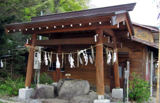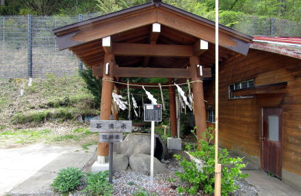 ふたたび参道に戻って20メートルほど進むと、古い道の跡の南脇に手水舎があります。「石清水」と呼ばれている水場です。飲料にもできる諏訪の名水だそうです。