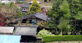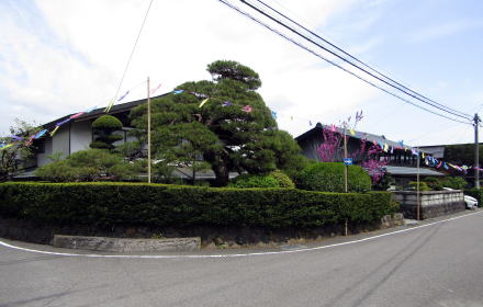 ▲東参道沿いの長沢地区の大棟造りの古民家