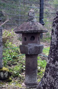 説明板では、六地蔵を祀る六角柱あるいは八角柱だということなので、石灯籠のような石塔がそれです。笠の下は六角柱になっていて、穴が6個穿ってあります。この穴それぞれに地蔵様が彫られているということなのでしょうか。 |